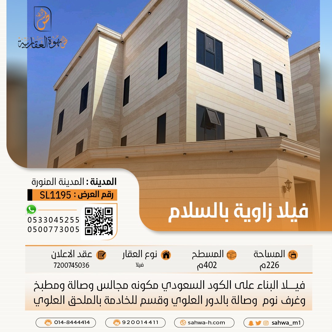 عنوان للاعلان:- فيلا زاوية بالسلام