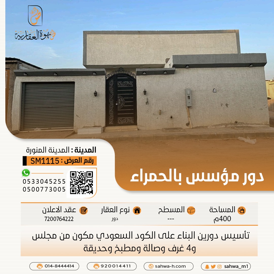 عنوان للاعلان:- دور مؤسس بالحمراء